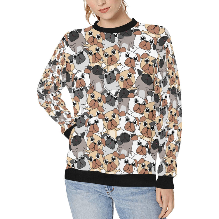 This charming sweatshirt showcases the cutest Pugs in various colors, all playfully crowded on top of each other. It's a busy yet incredibly cute design that captures the lively and lovable nature of Pugs.