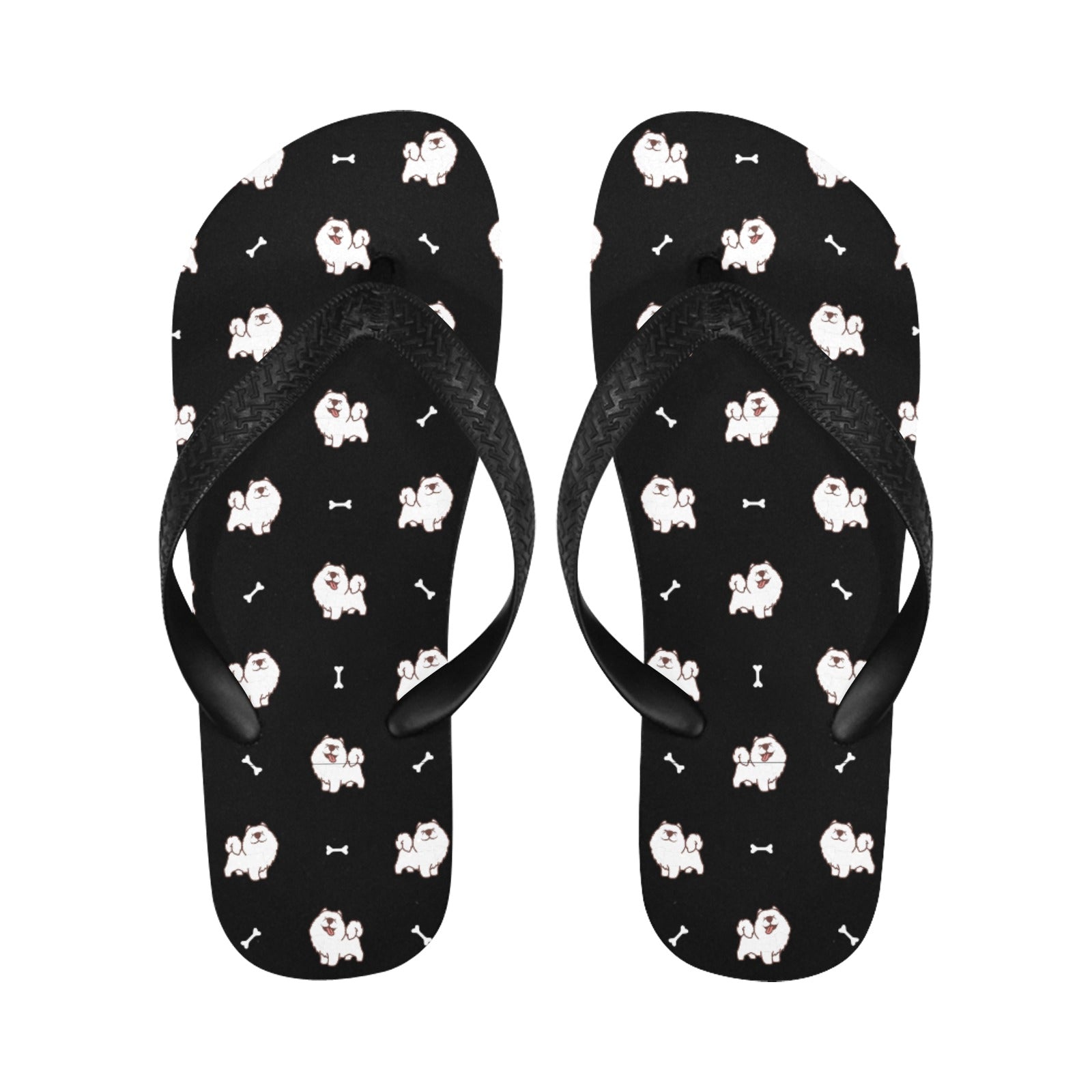 These delightful slippers feature charming American Eskimo dogs, radiating happiness with their fluffy coats and playful expressions.