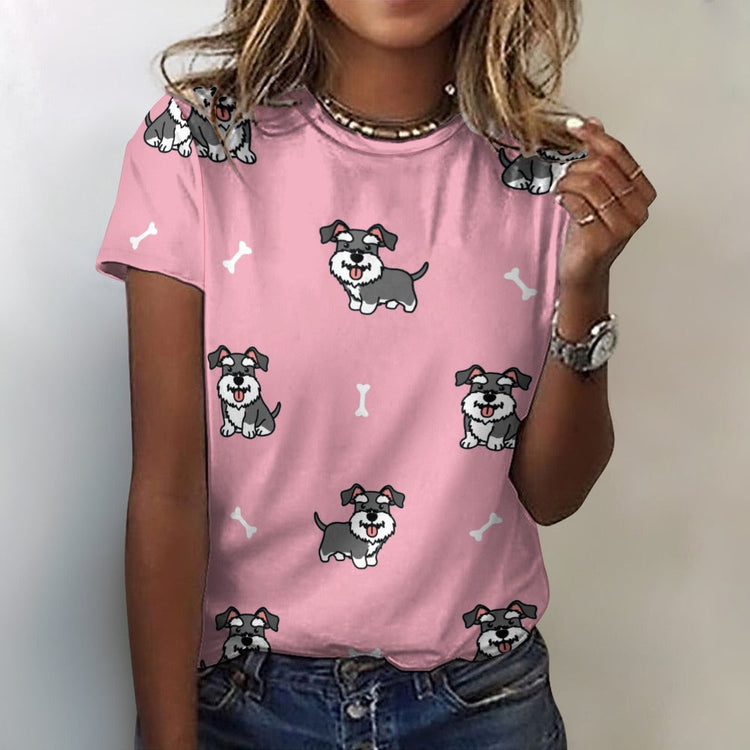 Smiling Schnauzer Love All Over Print Women's Cotton T-Shirt - 5 Colors