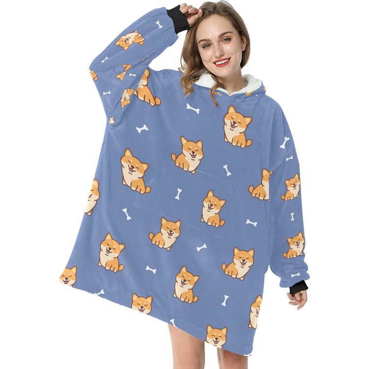 Smiling Shiba Love Blanket Hoodie for Women - 4 Colors
