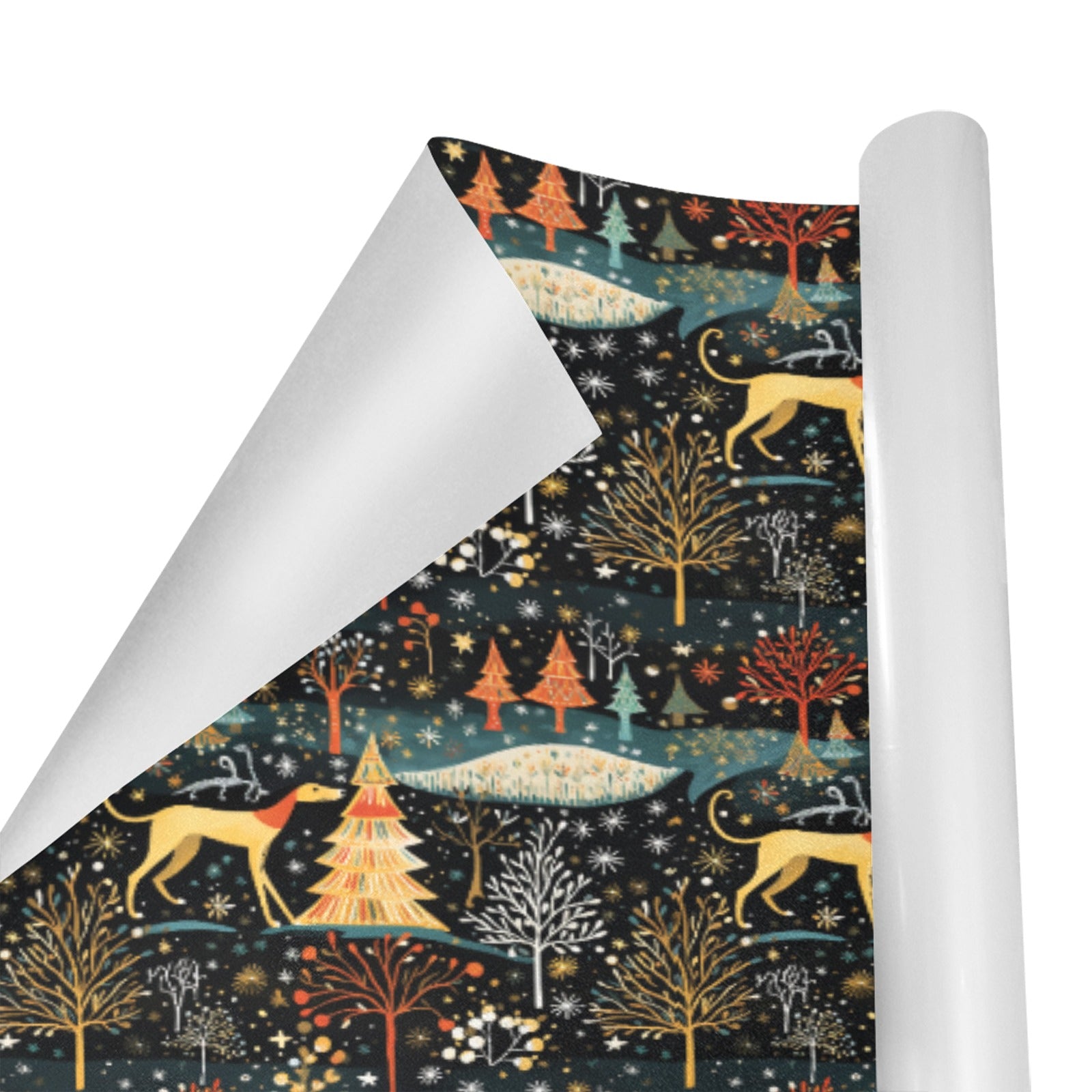 Wrap your gifts in the enchanting beauty of winter with our Starry Winter Walk Whippet Christmas Gift Wrapping Paper.
