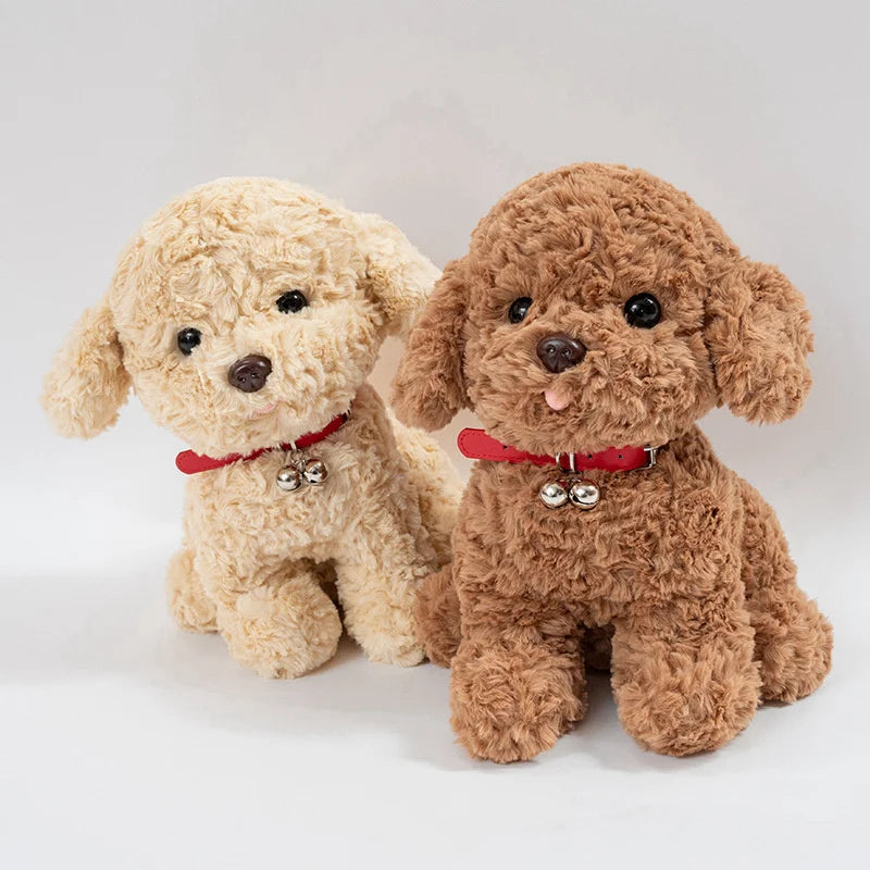 Meet the Toy Poodle plush that steals hearts with a sweet red collar and double bells.