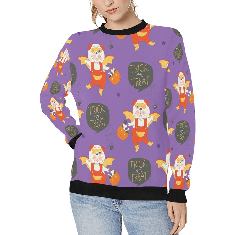 Trick or Treat English Bulldog Women's Halloween Sweatshirt - 4 Colors