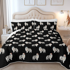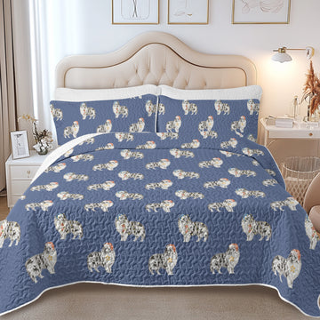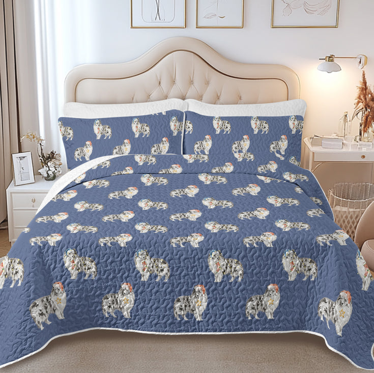 Watercolor Bi Blue Shelties Collies Christmas Quilted Bedding Set