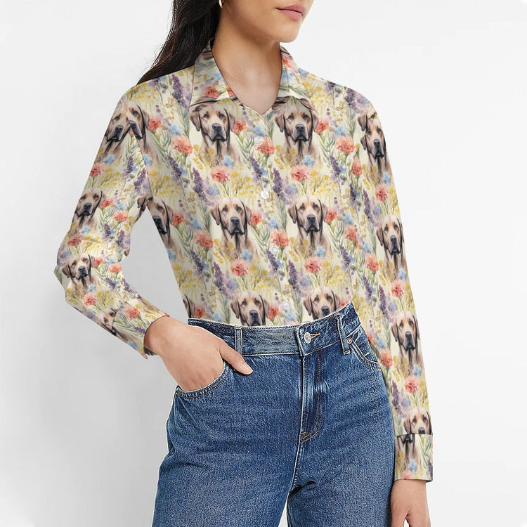 Watercolor Blossoms and Chocolate Labradors Women's Shirt