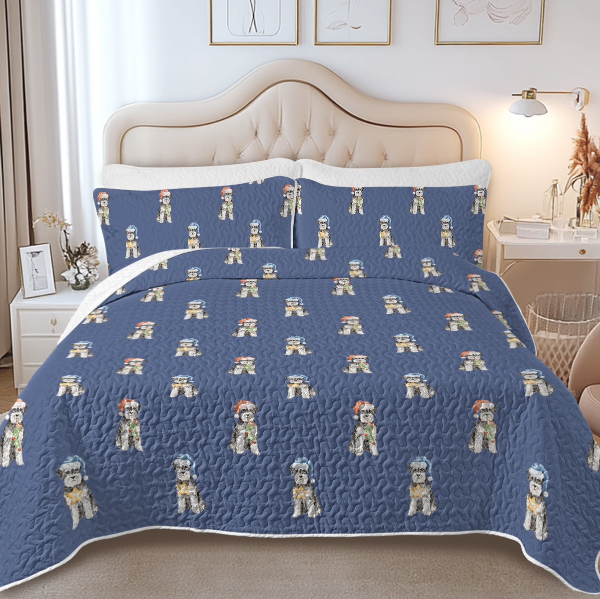 Watercolor Blue Schnauzer Christmas Quilted Bedding Set