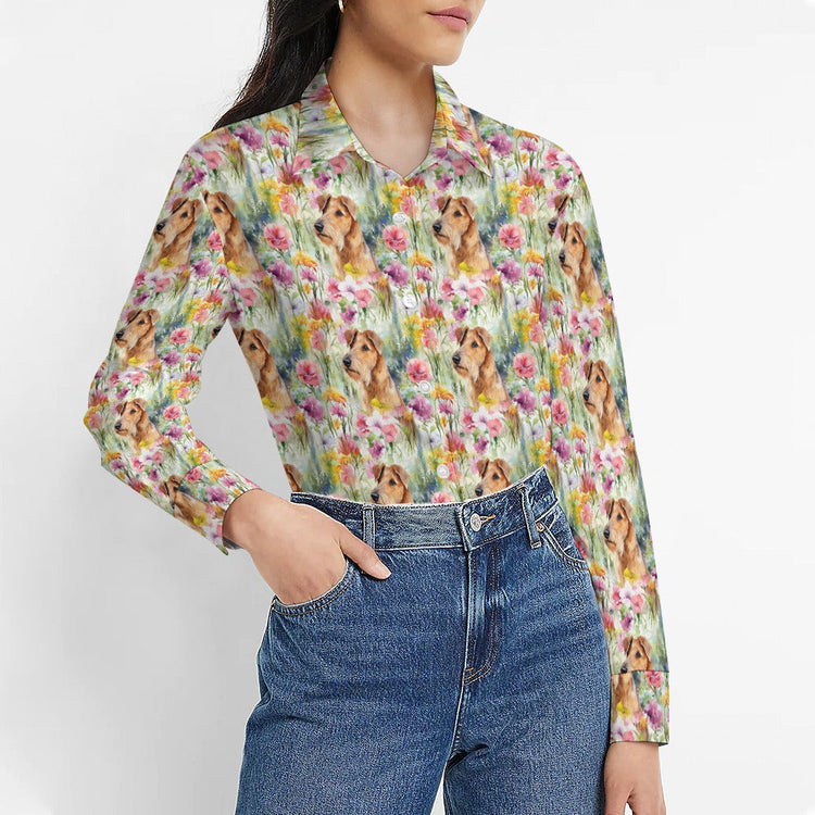 Watercolor Flower Garden Airedale Terrier Women's Shirt
