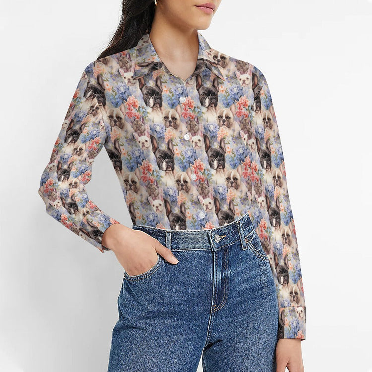 Watercolor Flower Garden French Bulldogs Women's Shirt