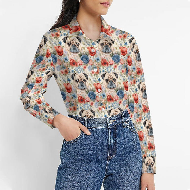 Watercolor Flower Garden Senior Pug Love Women's Shirt - 2 Designs