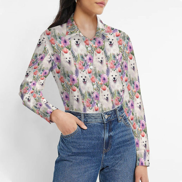 Watercolor Garden American Eskimo Dogs Women's Shirt