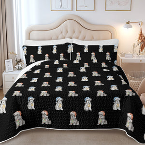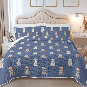Watercolor Schnauzer Puppies Christmas Quilted Bedding Set