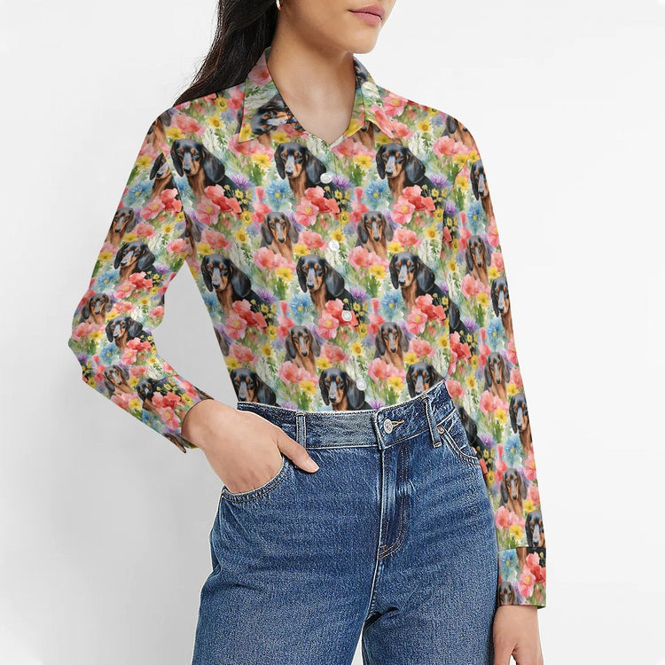 Watercolor Symphony Dachshunds & Blooms Women's Shirt