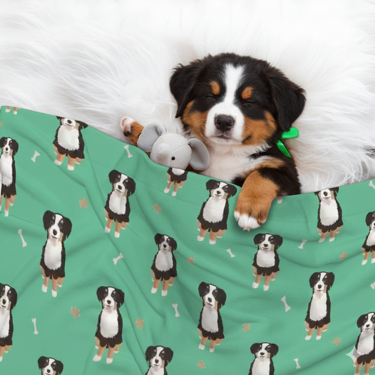 Explore more cozy pet blanket designs at iLoveMy.Pet for tail-waggingly good Bernese Blankets for Bernese lovers.