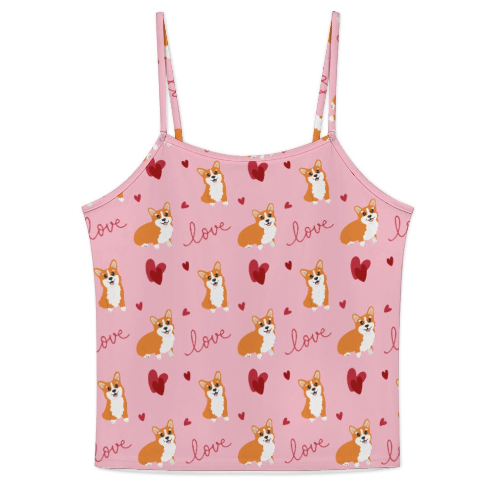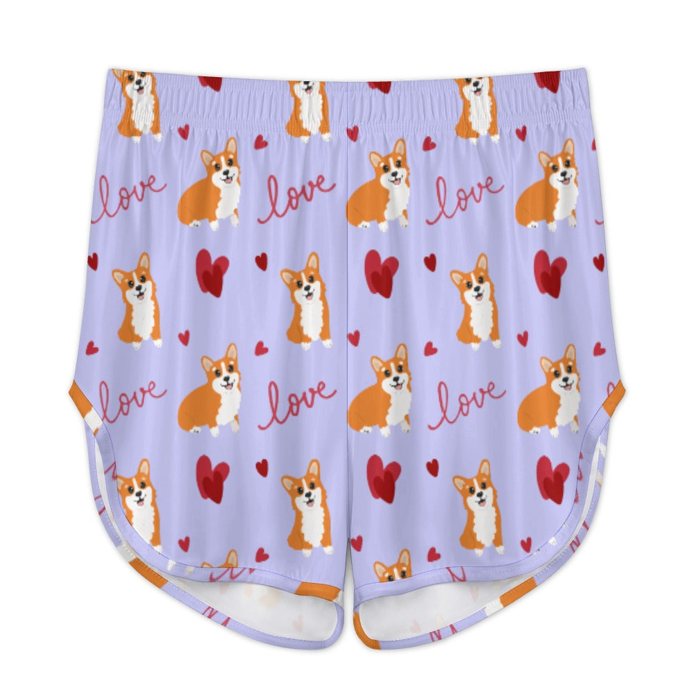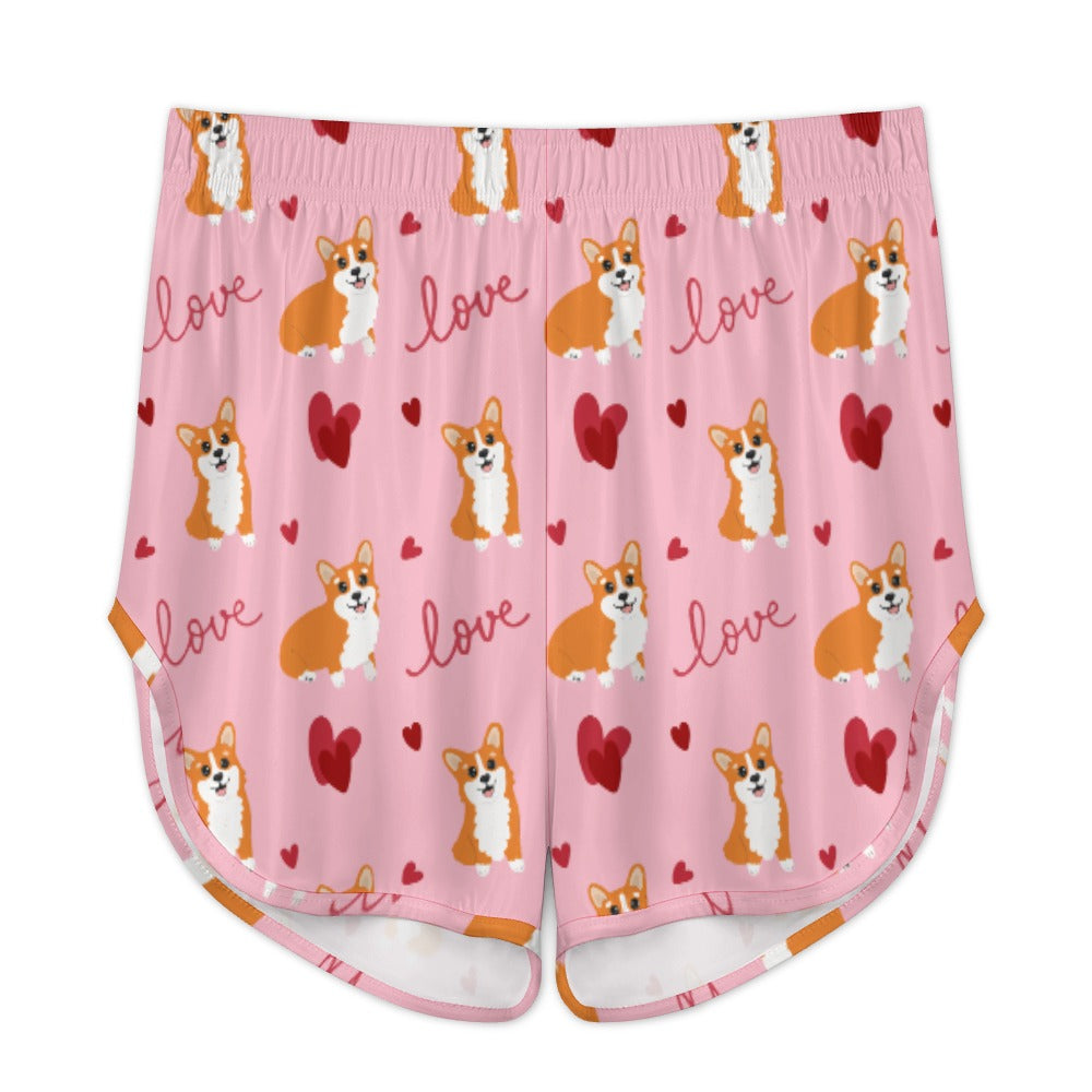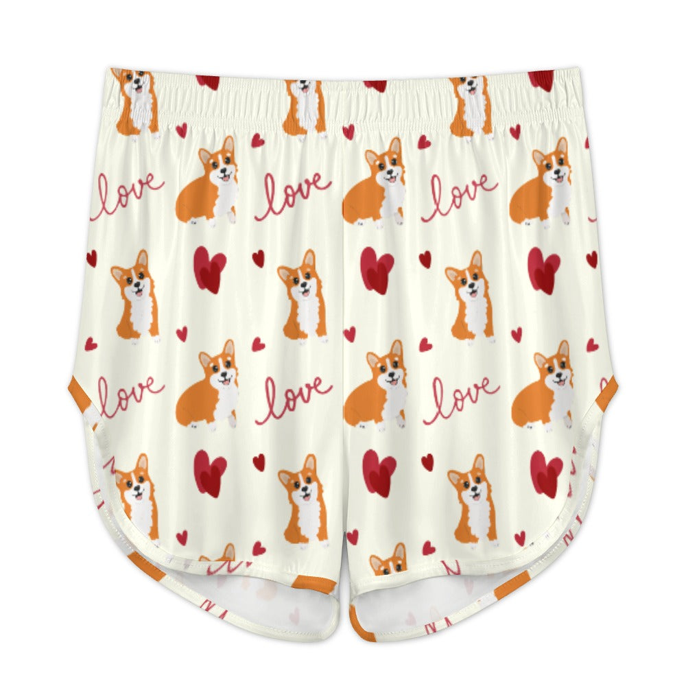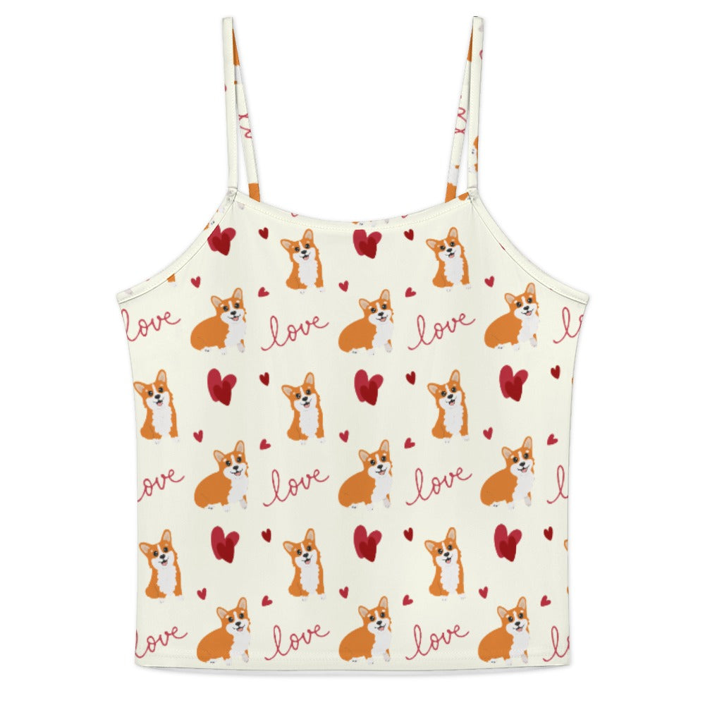 Celebrate your love for Corgis with our charming Women's Cami and Shorts Pajama Set! This delightful set features the cutest Corgis surrounded by red hearts and expressions of love, perfectly capturing the affection you have for these adorable companions.