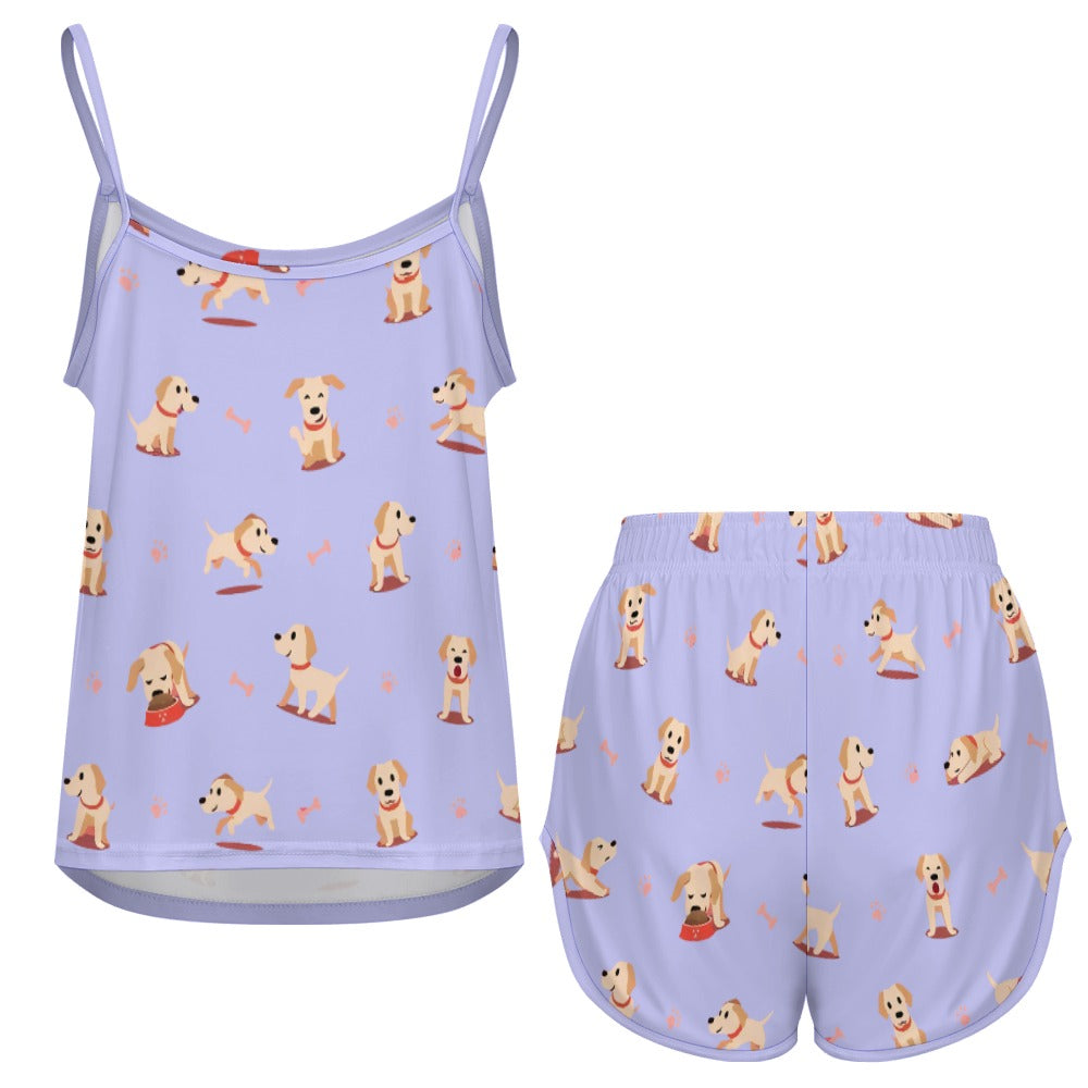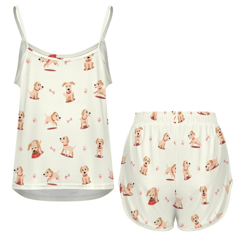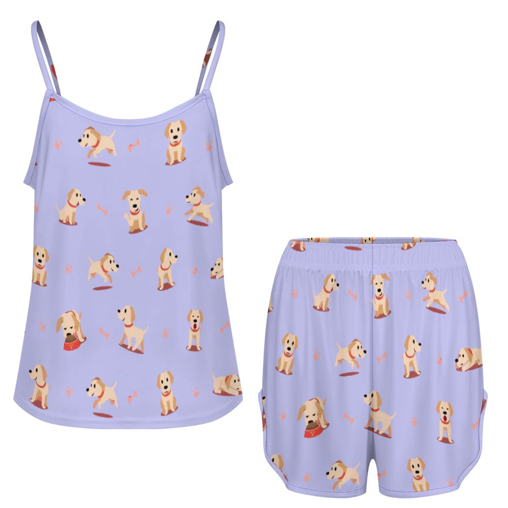 Celebrate your love for Labradors with our charming Women's Cami and Shorts Pajama Set! This delightful set features a playful design of cartoon Labrador puppies, each captured in adorable poses that will warm your heart.