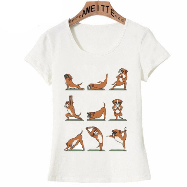 Made of super-soft fabric, available in six sizes from Small to XL , and featuring a Boxer doing Yoga design. Wear this Yoga Boxer t-shirt and flaunt your two loves at once!