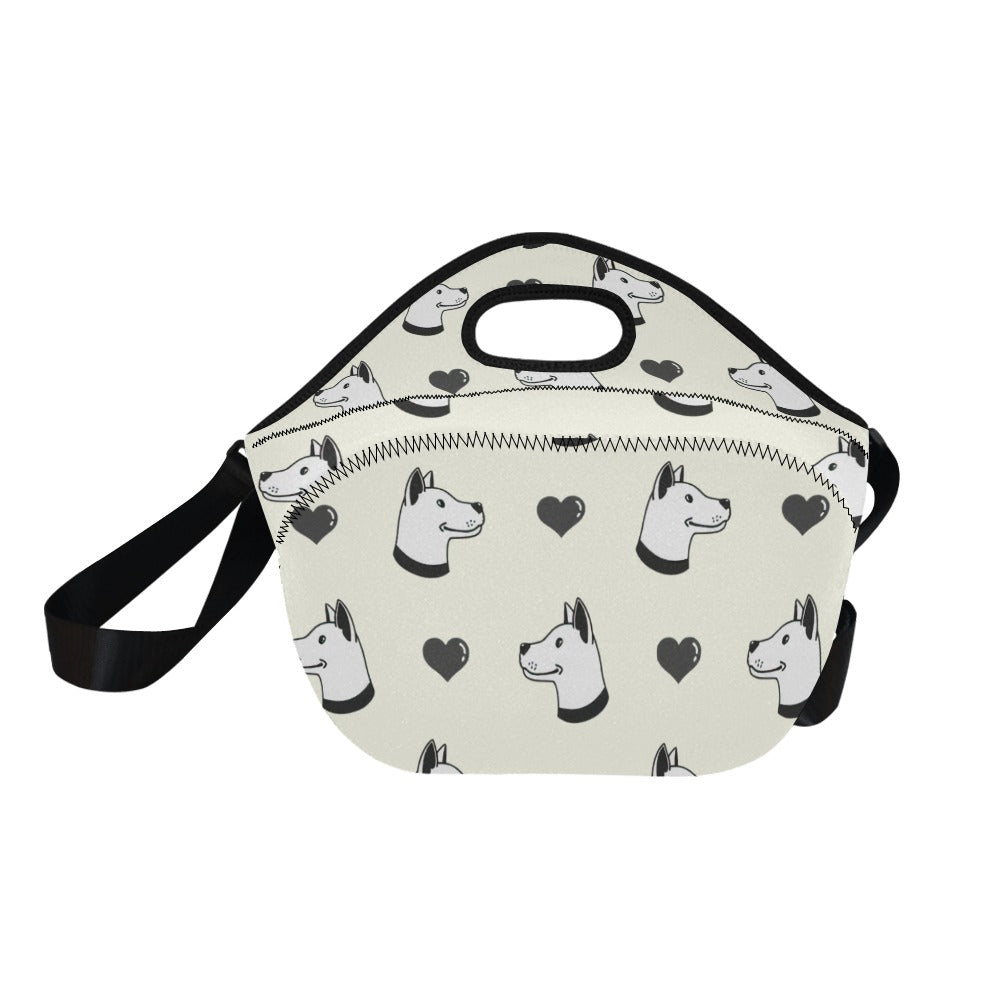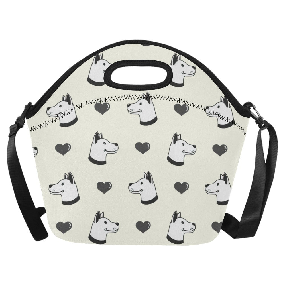 Celebrate your love for the majestic Dogo Argentino with our charming Neoprene Lunch Bag, designed to keep your meals as warm as your heart. This delightful bag features a sleek pattern of cartoon Dogo Argentinos, each exuding a calm and noble expression, surrounded by affectionate heart icons.