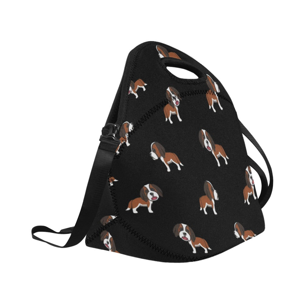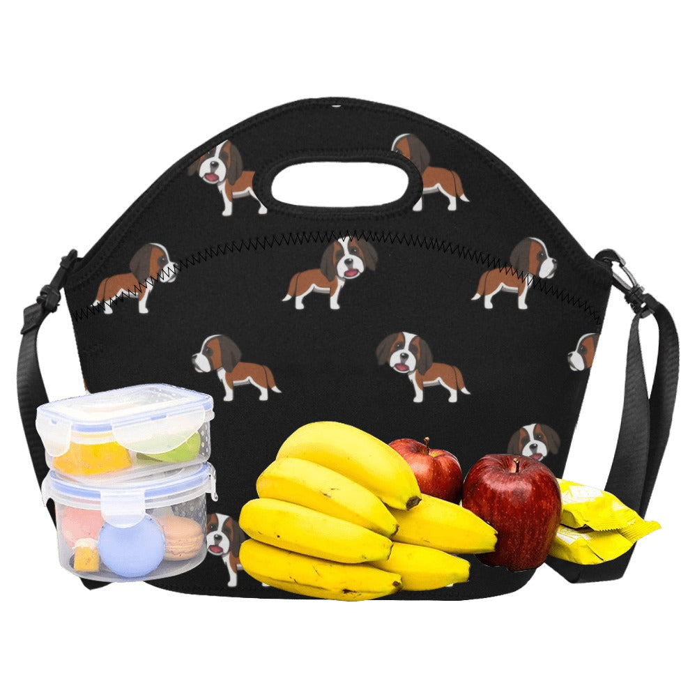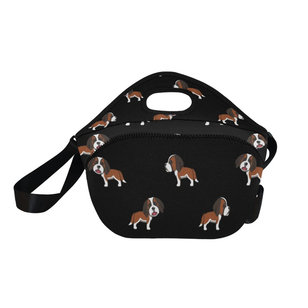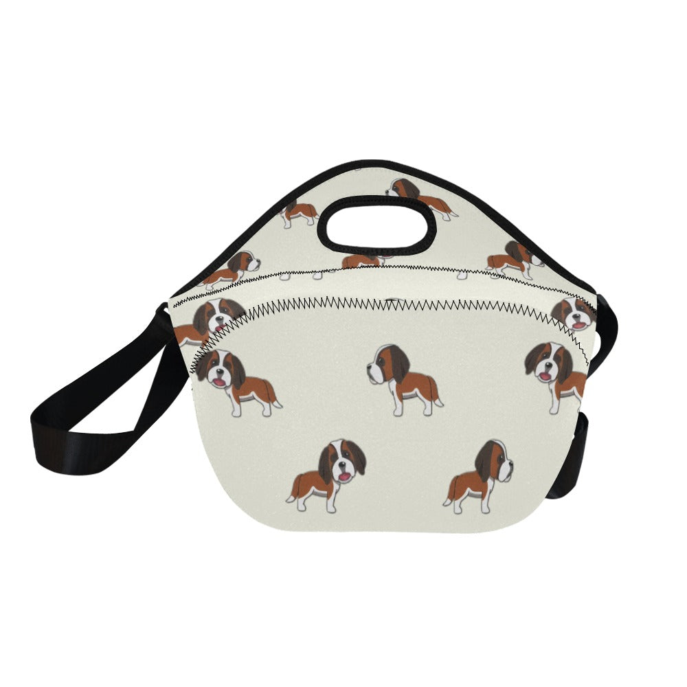 Celebrate your love for the majestic Saint Bernard with our charming Neoprene Lunch Bag! This delightful bag features a repeating pattern of cartoon Saint Bernards, each exuding warmth and loyalty with their playful expressions.
