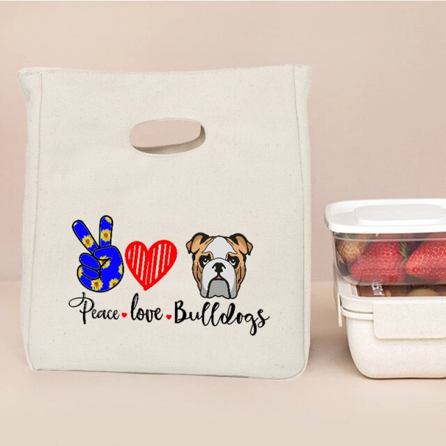Peace, Love, and Bulldogs Insulated Lunch Bag