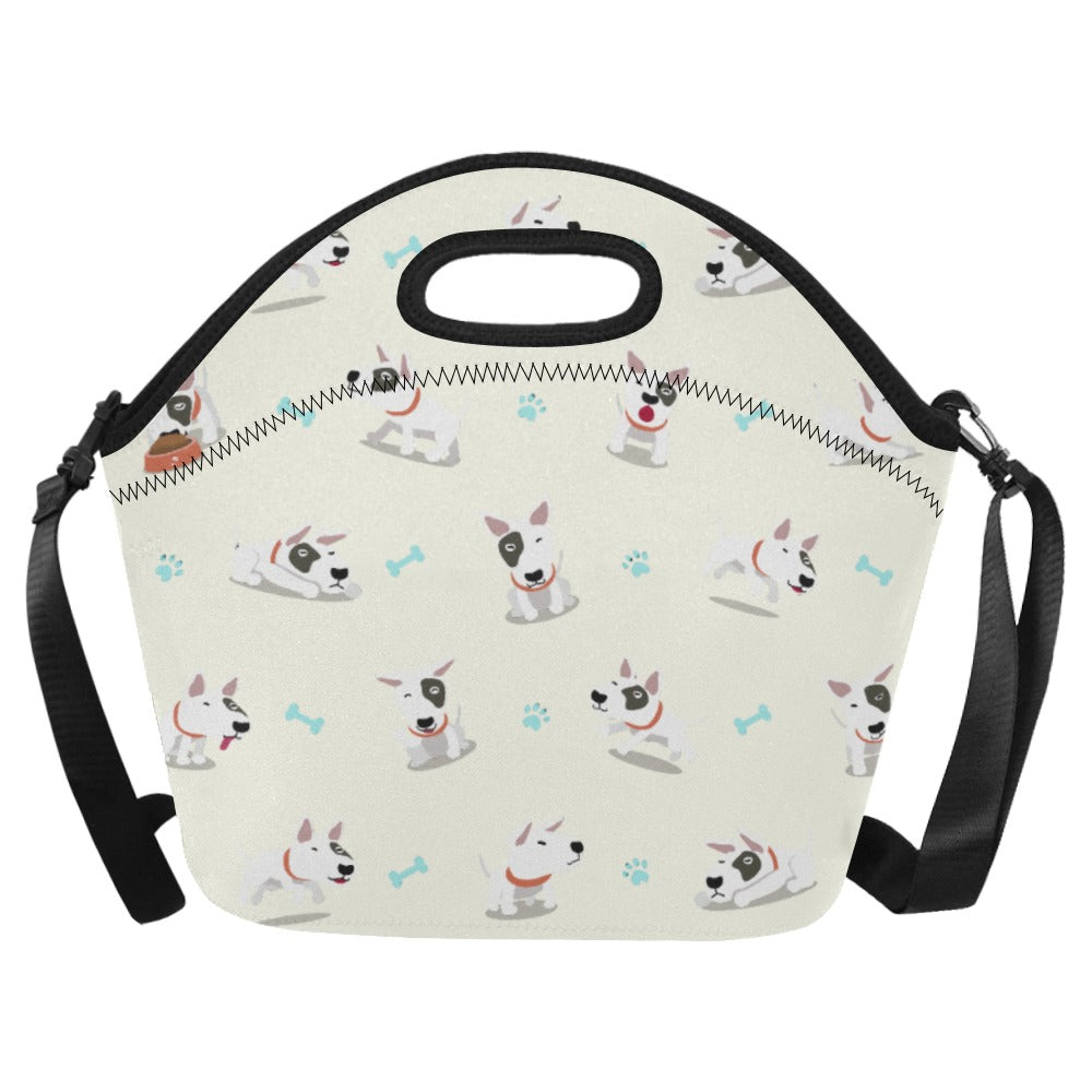 Celebrate your love for Bull Terriers with our Playful Bull Terrier Adventures Neoprene Lunch Bag! This delightful bag features a charming design of lively Bull Terriers in playful poses, bringing joy to every meal.