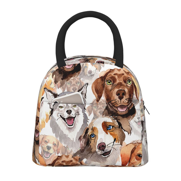 Watercolor Dogs Insulated Lunch Bag with Exterior Pocket
