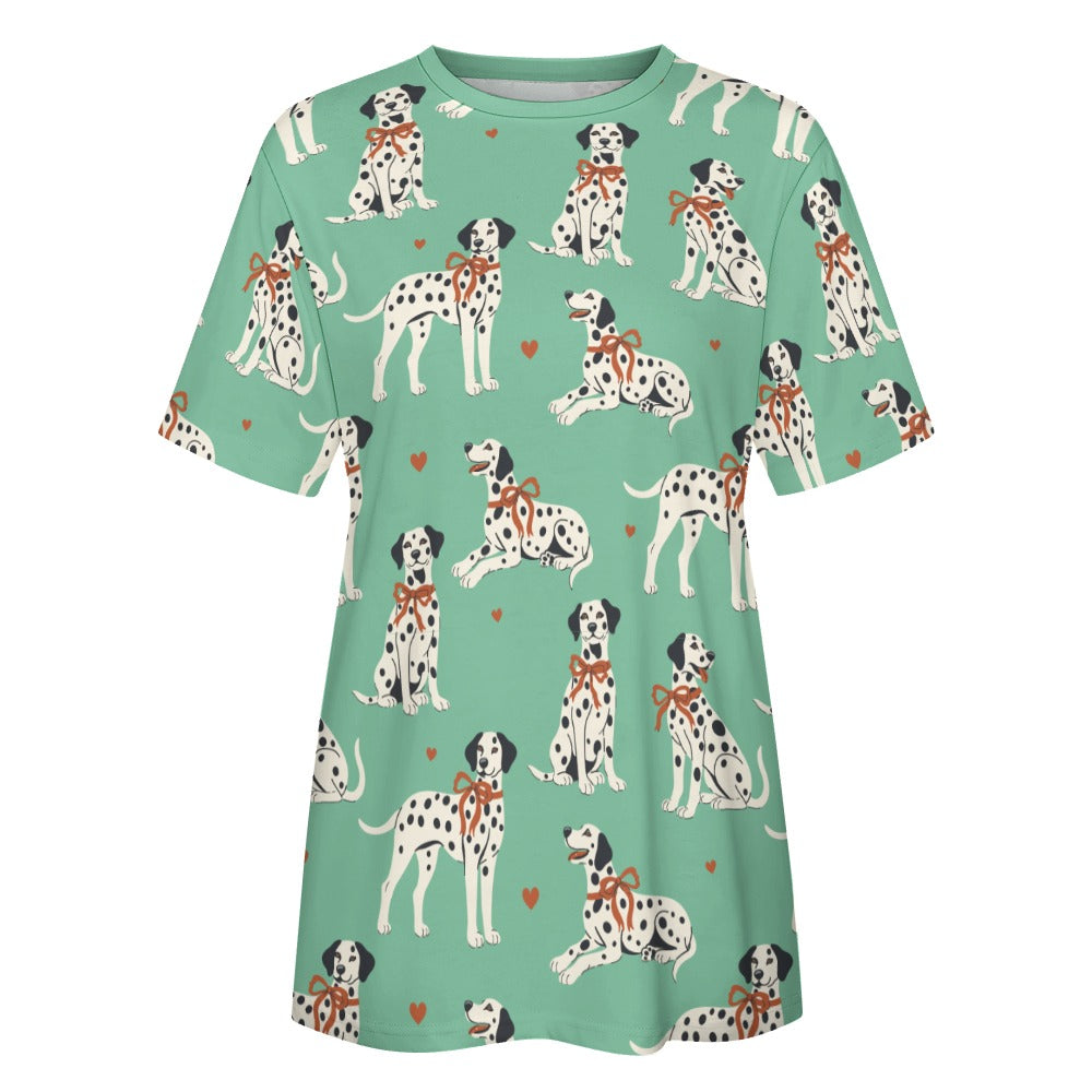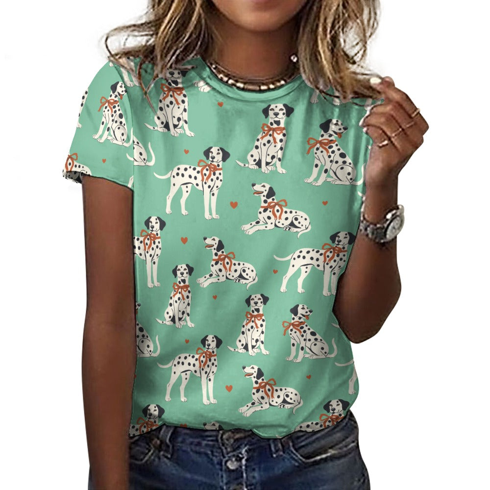 Dalmatians in Holiday Ribbons Women's Cotton T-Shirt-Apparel--31