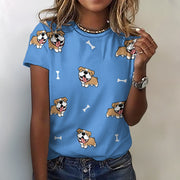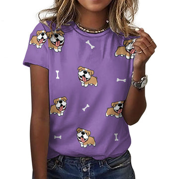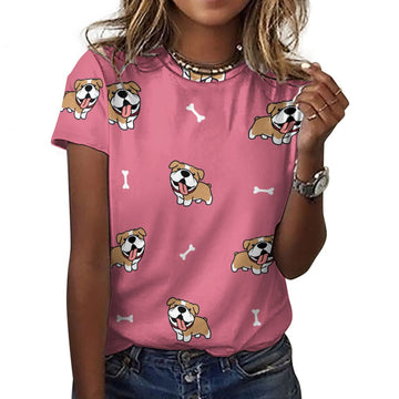 Happy Happy English Bulldog Love All Over Print Women's Cotton T-Shirts - 4 Colors
