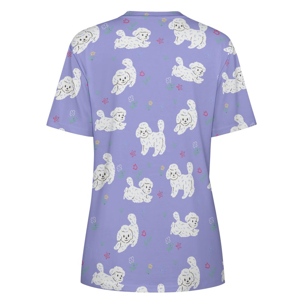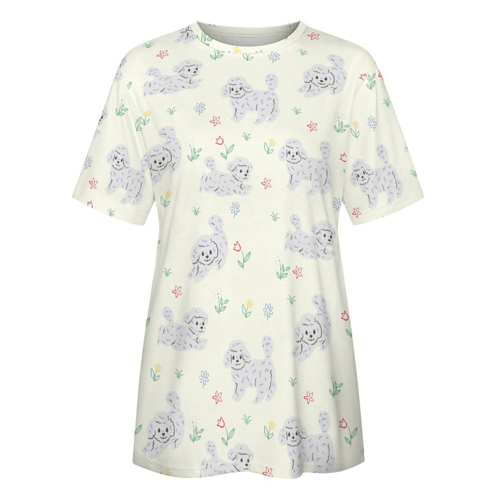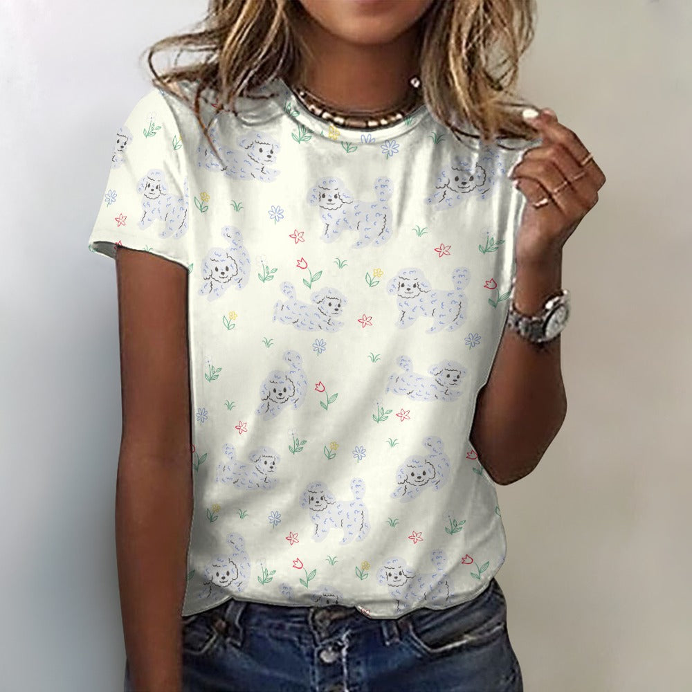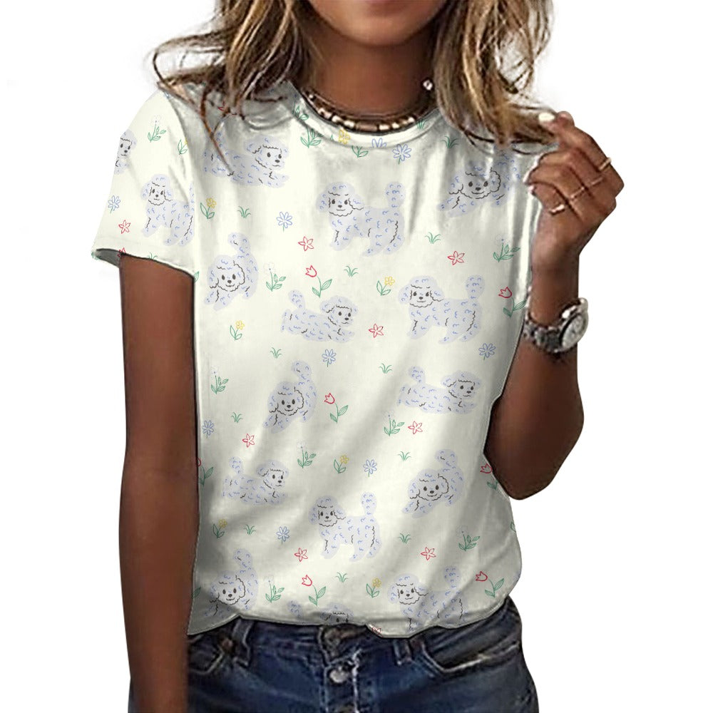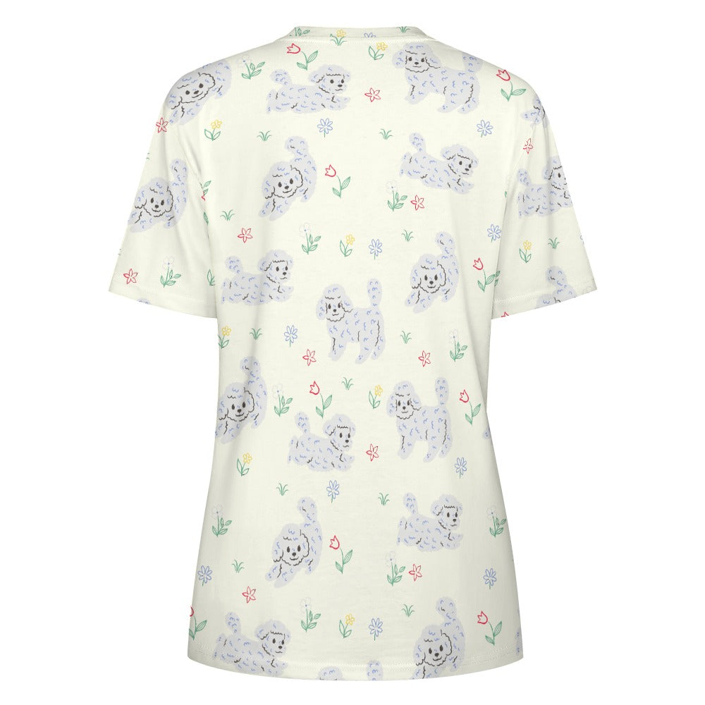 Playful Poodles in a Garden Stroll Women's Cotton T-Shirt-Apparel--33