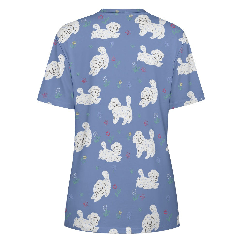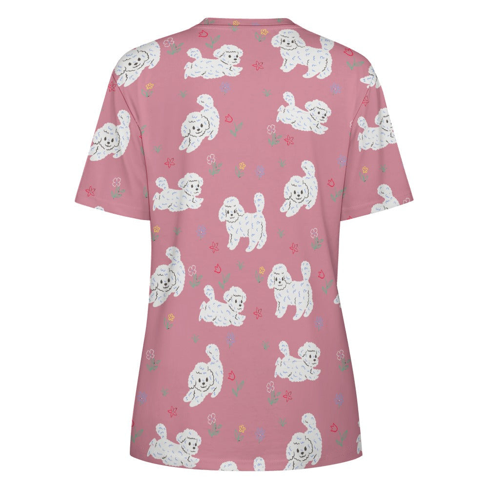 Playful Poodles in a Garden Stroll Women's Cotton T-Shirt-Apparel--7