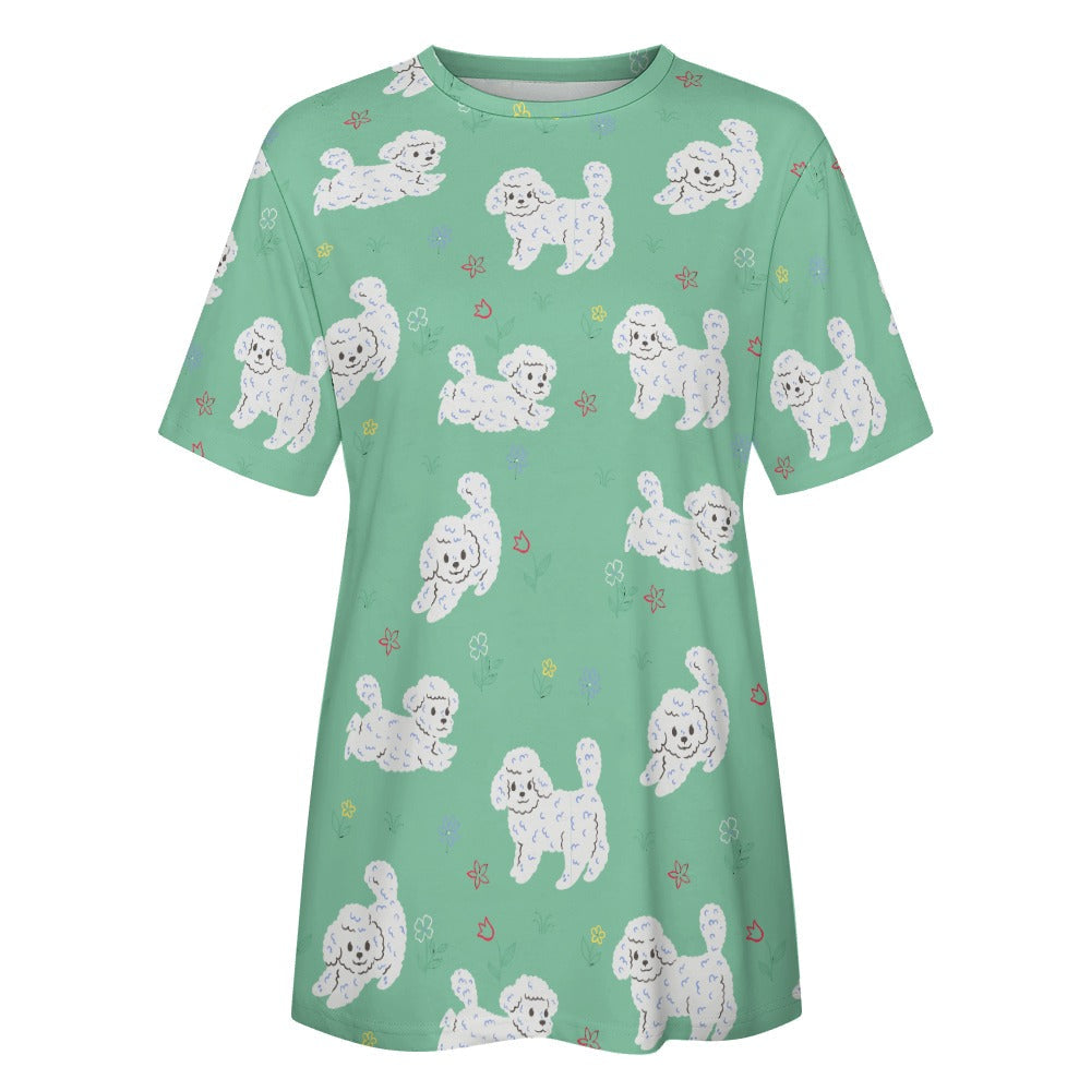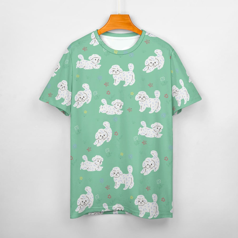 Playful Poodles in a Garden Stroll Women's Cotton T-Shirt-Apparel-Mint Green-2XS-30