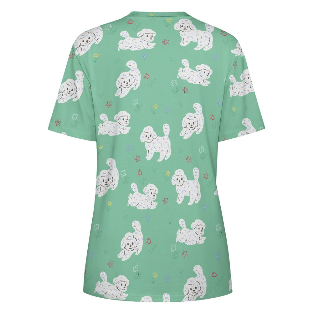 Playful Poodles in a Garden Stroll Women's Cotton T-Shirt-Apparel--2