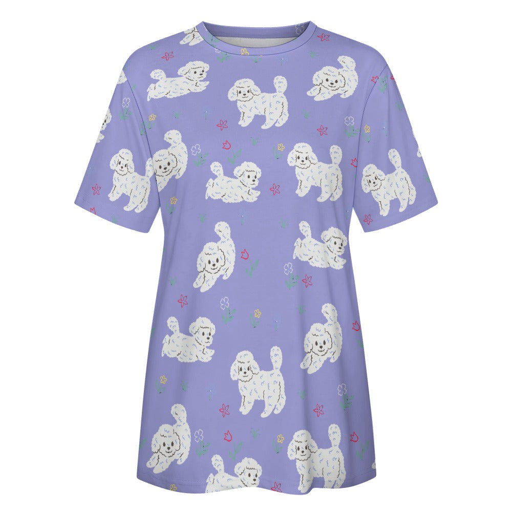 Playful Poodles in a Garden Stroll Women's Cotton T-Shirt-Apparel-Lavender Purple-2XS-32