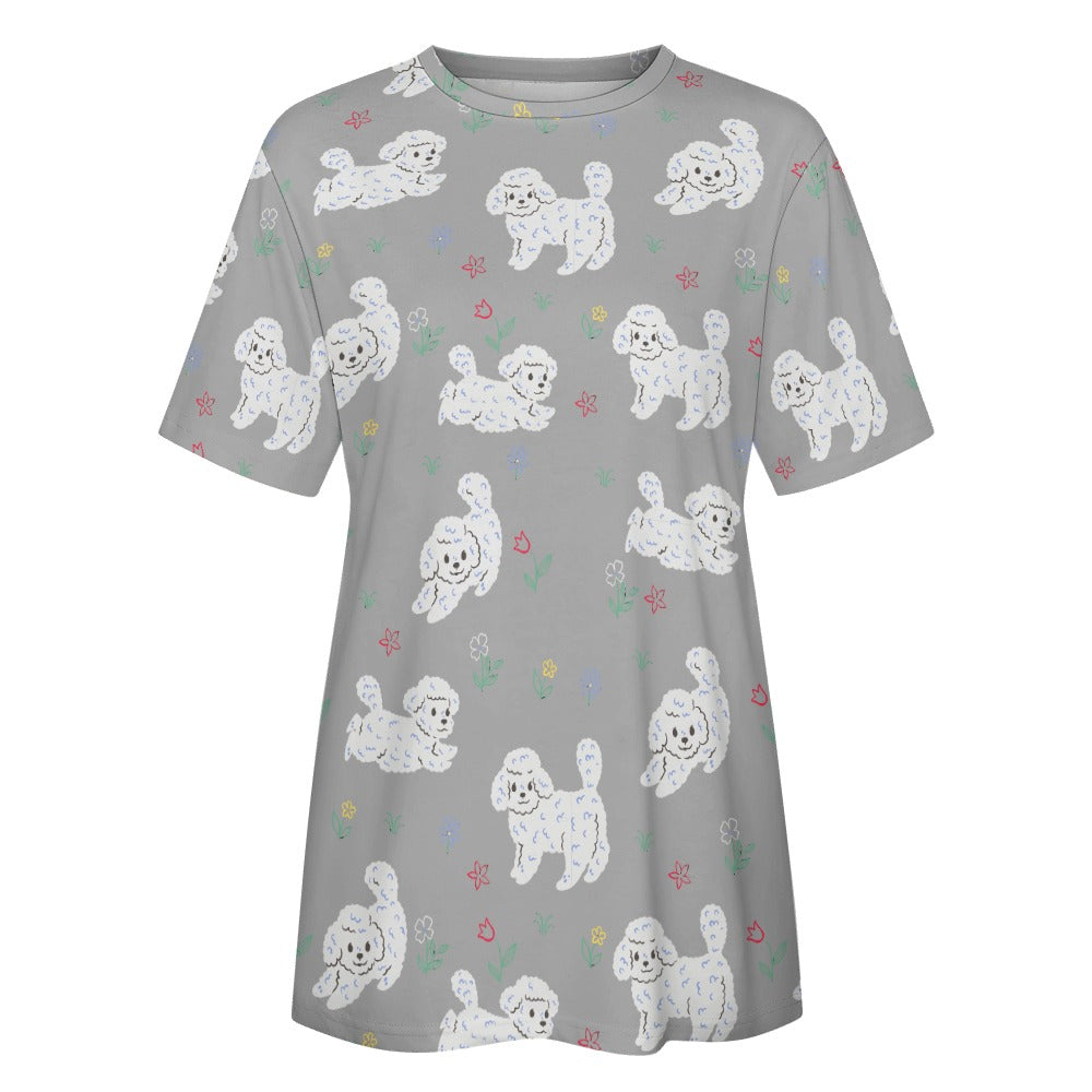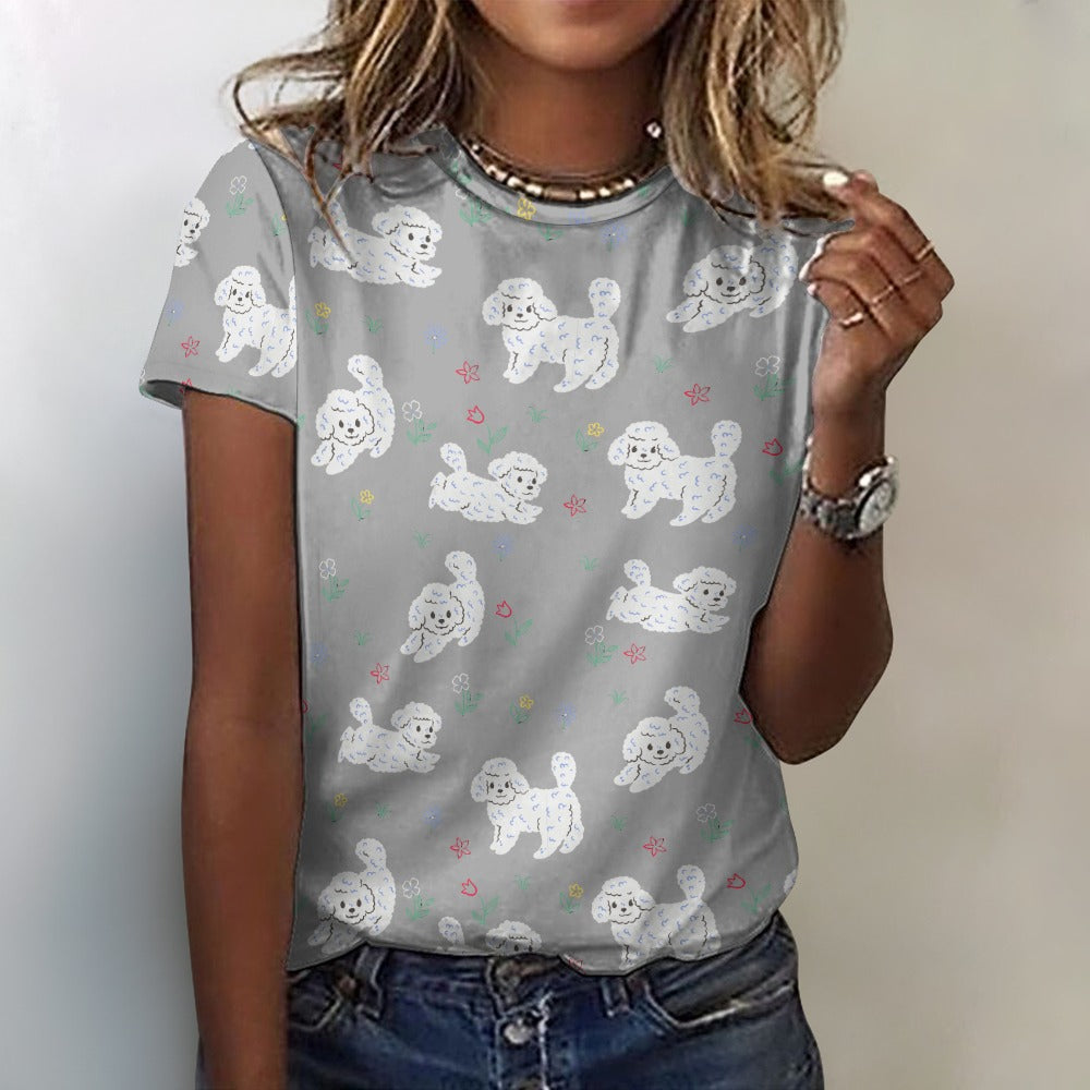 Playful Poodles in a Garden Stroll Women's Cotton T-Shirt-Apparel-Parisian Gray-2XS-35