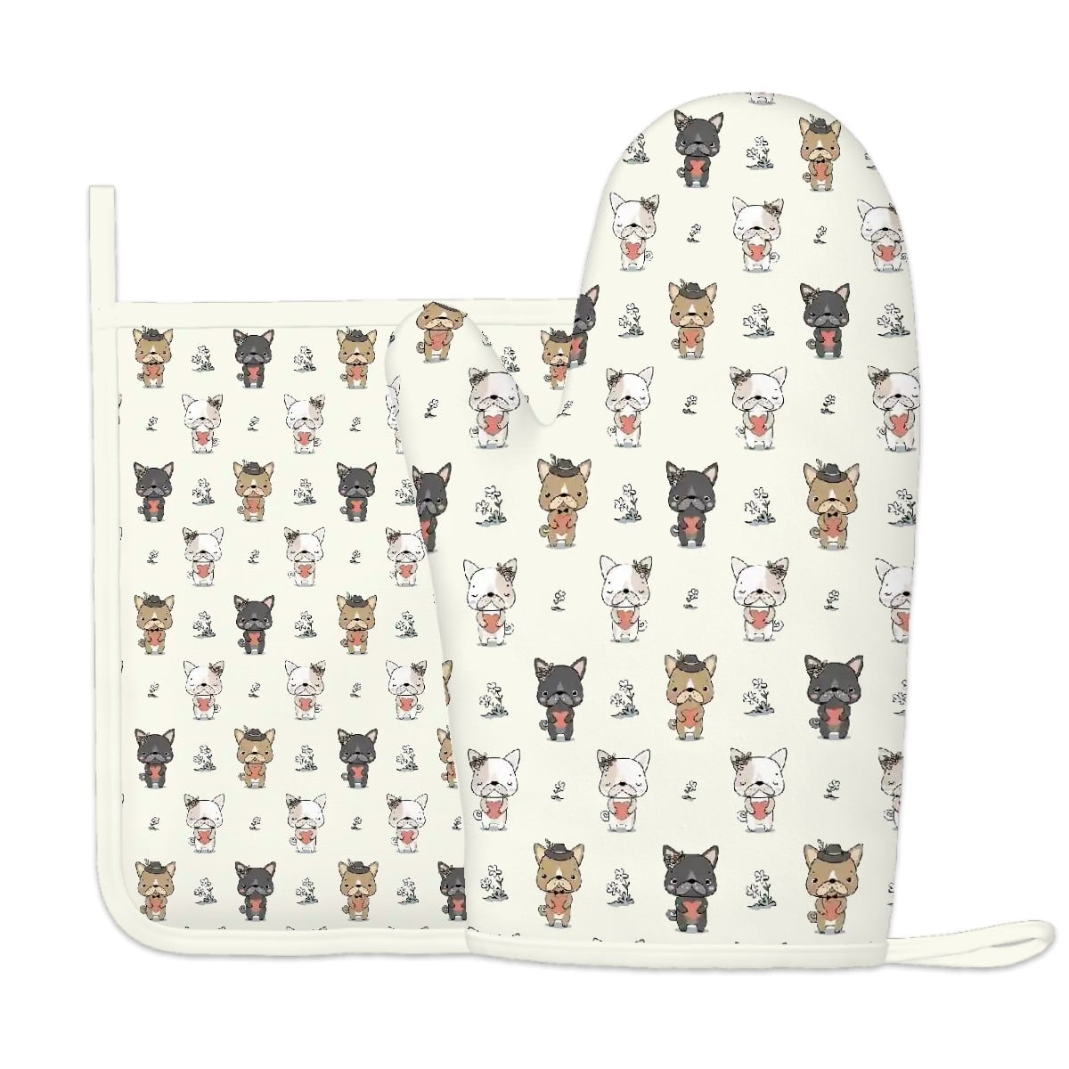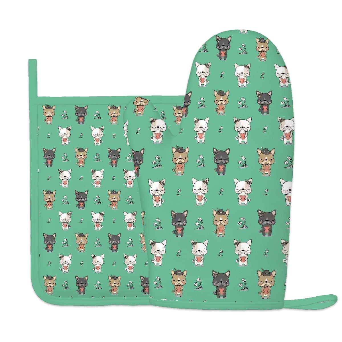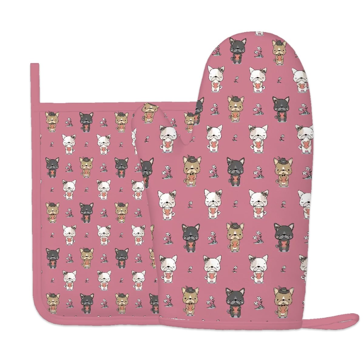 Adorable French Bulldog Flowers and Hearts Oven Mitts and Pot Holder Set-Kitchen Decor-Accessories,Dog Mom Gifts,French Bulldog-6