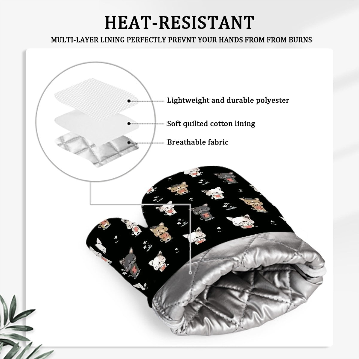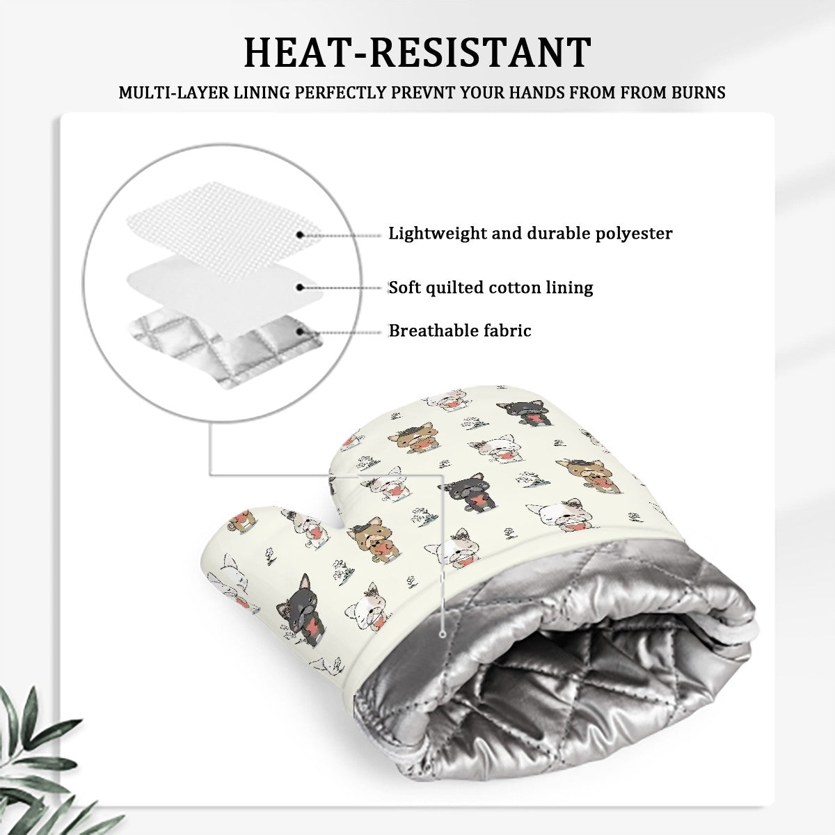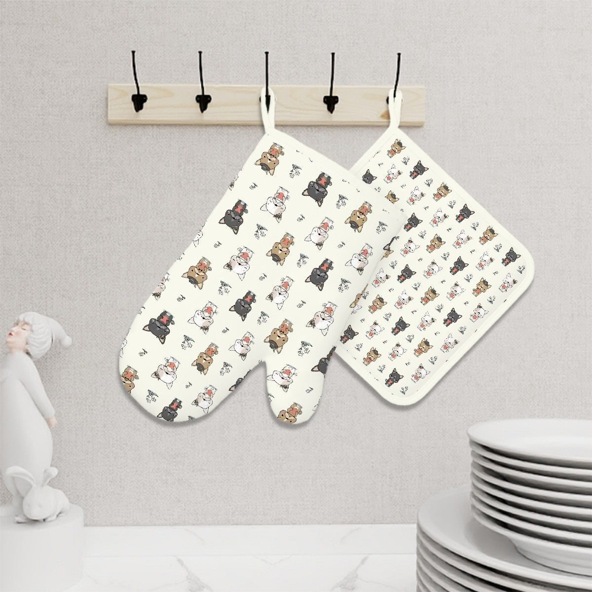 Adorable French Bulldog Flowers and Hearts Oven Mitts and Pot Holder Set-Kitchen Decor-Accessories,Dog Mom Gifts,French Bulldog-8