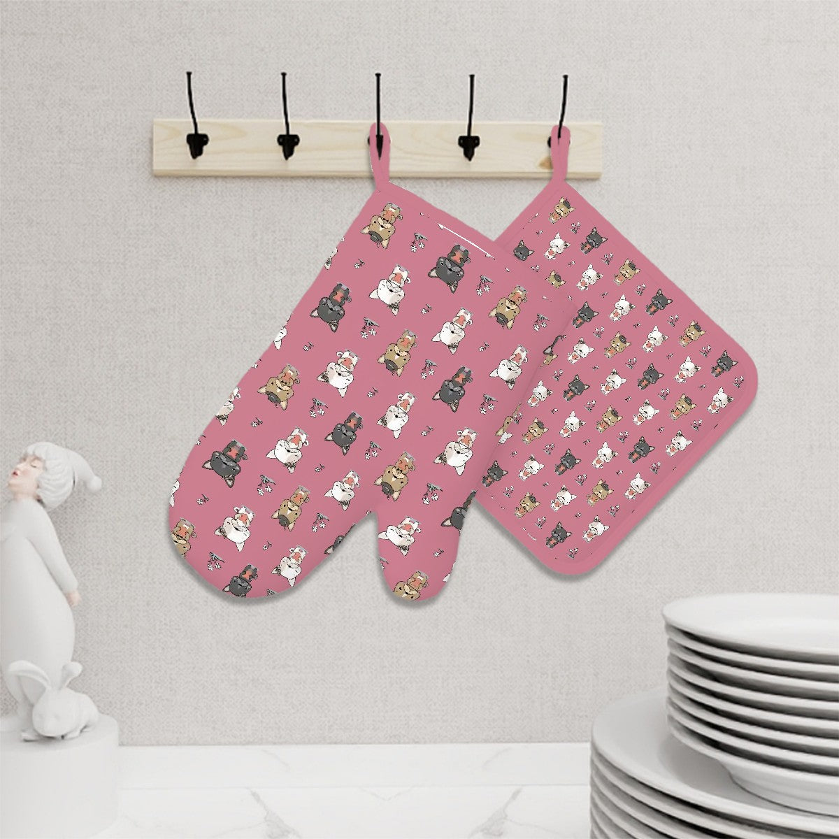 Adorable French Bulldog Flowers and Hearts Oven Mitts and Pot Holder Set-Kitchen Decor-Accessories,Dog Mom Gifts,French Bulldog-7