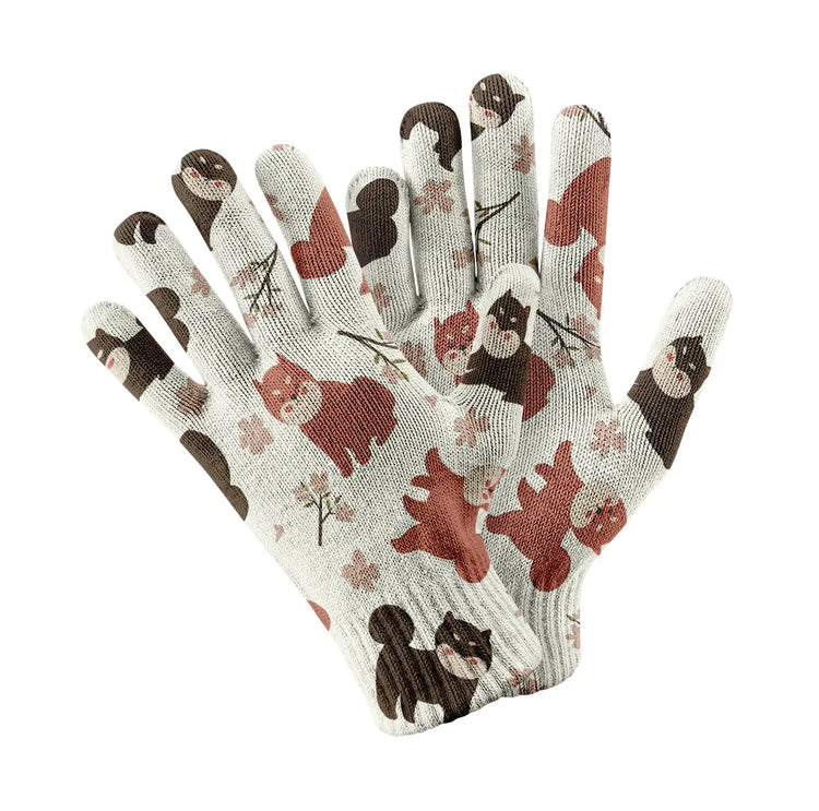 Adorable Shiba Inu with Blossoms Touch Screen Gloves