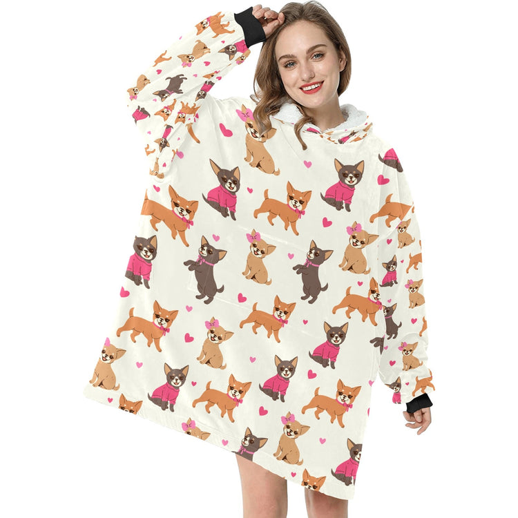 Charming Chihuahuas in Sweet Style Blanket Hoodie-Blanket-Apparel, Blanket Hoodie, Blankets, Chihuahua, Dog Mom Gifts-1