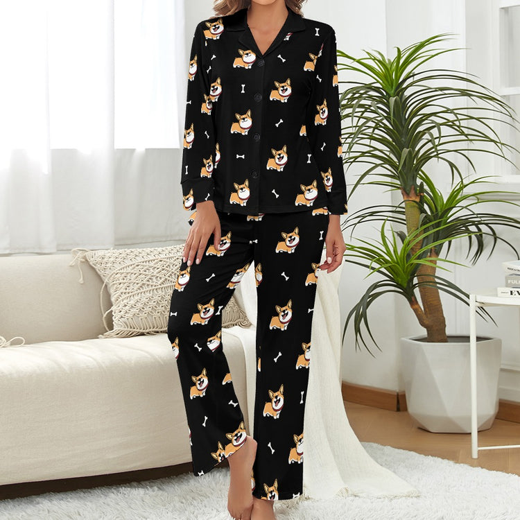 Corgi Bliss Pajamas Set for Women-Midnight Black-XS-34