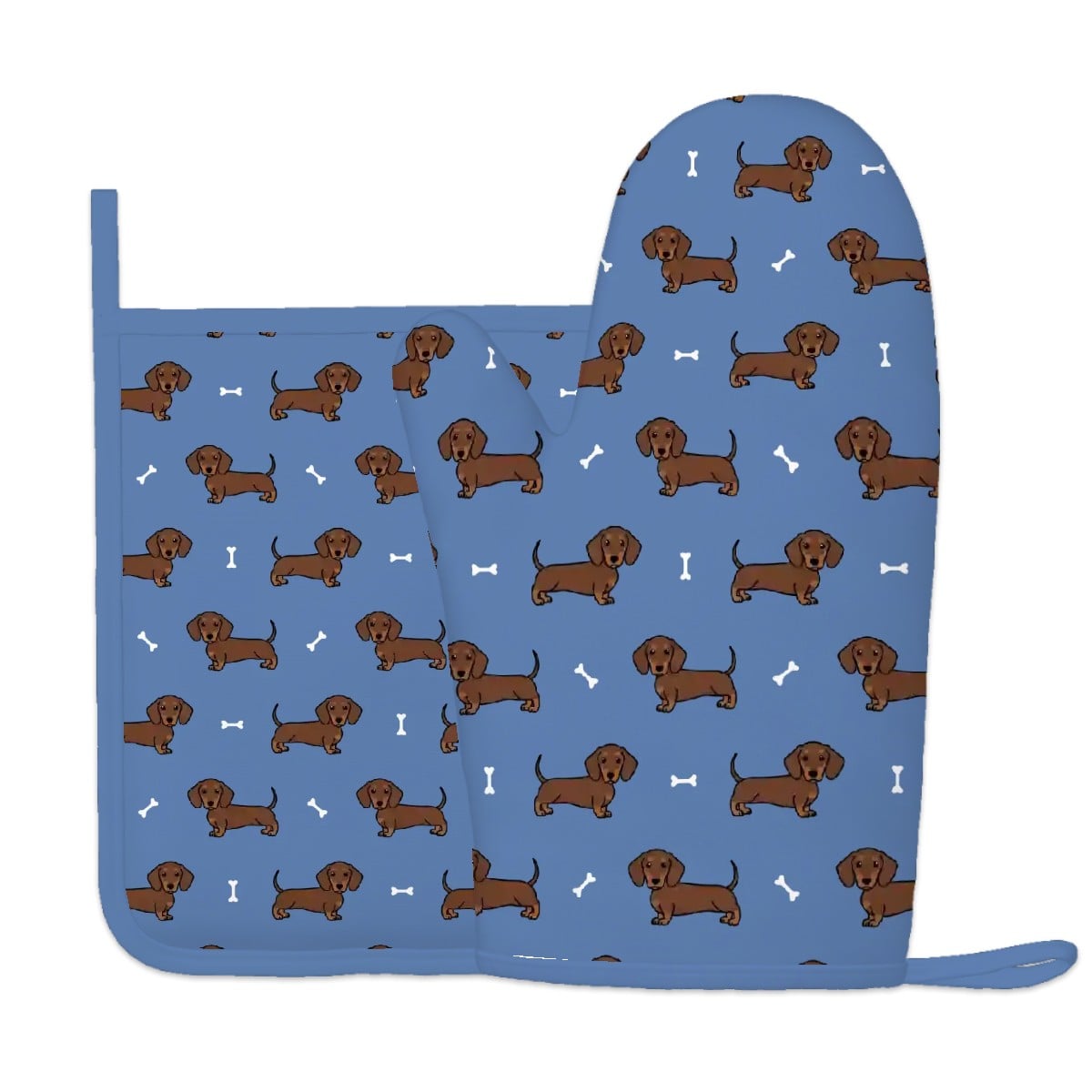 Cutest Chocolate Dachshund Oven Mitts and Pot Holder Set-Kitchen Decor-Accessories,Dachshund,Dog Mom Gifts-2