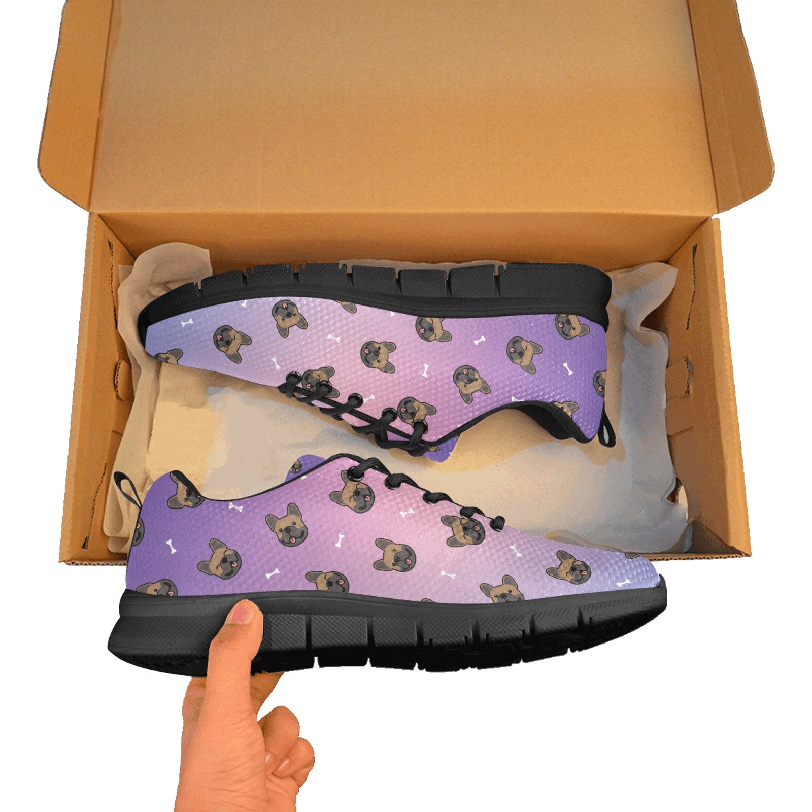 These sneakers feature a playful pattern of cheerful French Bulldog faces, perfectly capturing their delightful expressions.