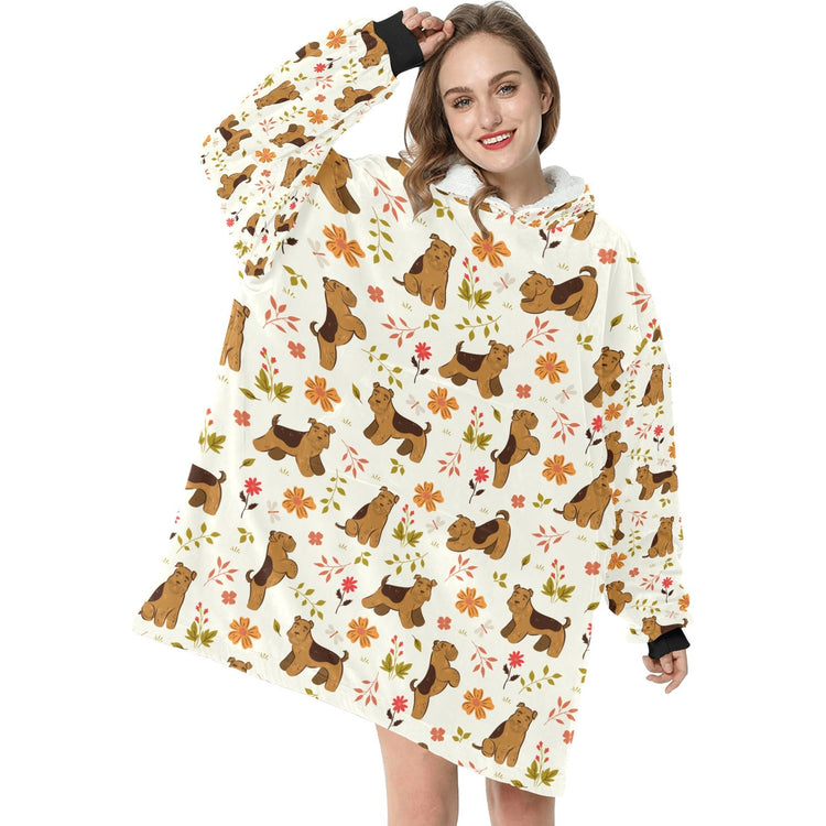 Flower Garden Airedale Terrier Blanket Hoodie