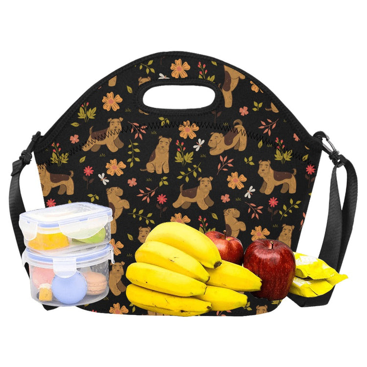 Flower Garden Airedale Terrier Neoprene Lunch Bag