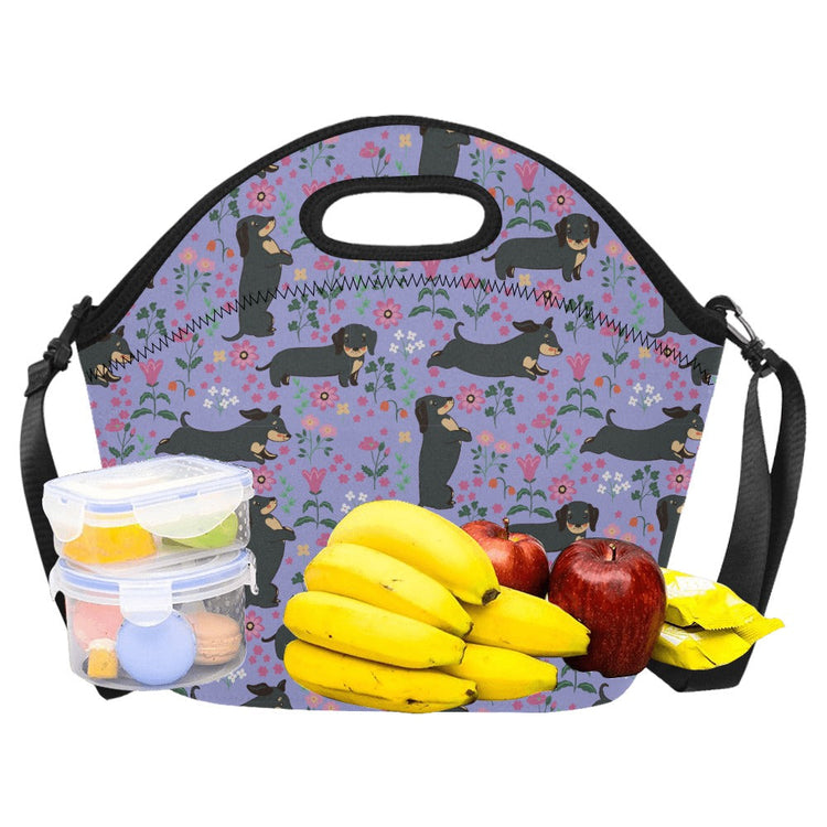 Flower Garden Black Dachshund Neoprene Lunch Bag