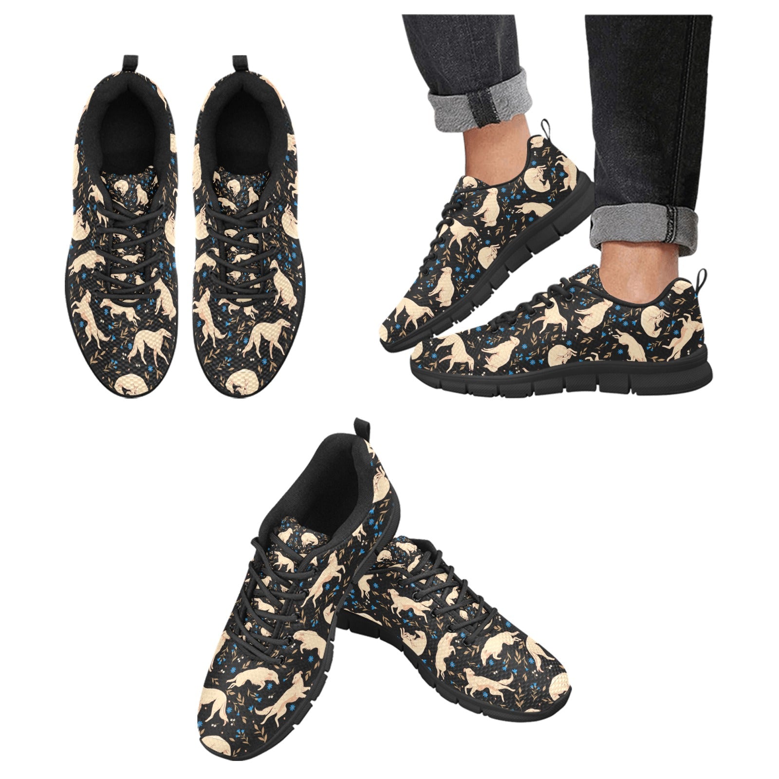 Elegant Borzoi designs adorn these sneakers, capturing the grace and beauty of the breed. Designed with both Borzoi lovers and women in mind.