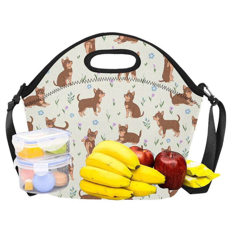 Flower Garden Chocolate Chihuahuas Neoprene Lunch Bag