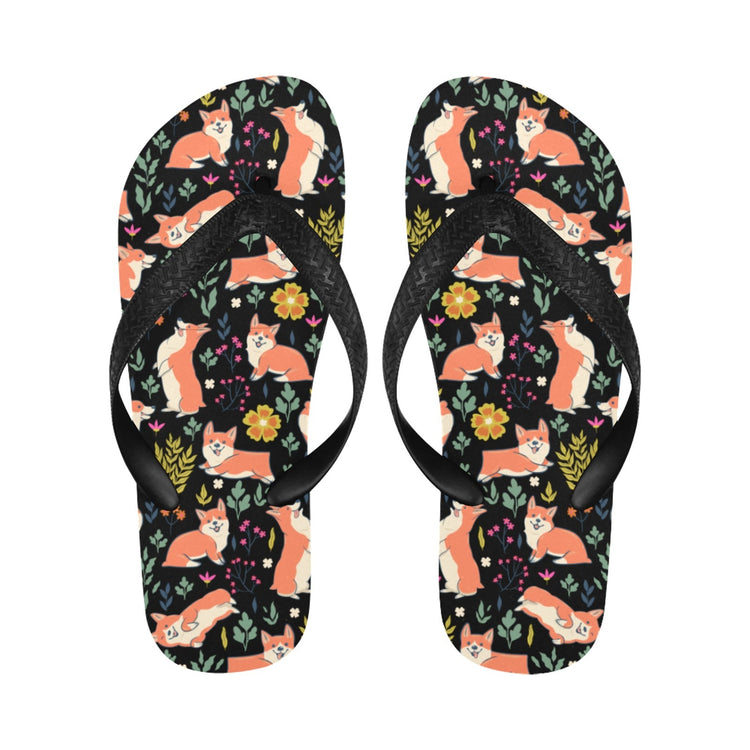 Flower Garden Corgis Unisex Slippers-Footwear-Accessories, Corgi, Dog Mom Gifts, Slippers-Midnight Black-S-26
