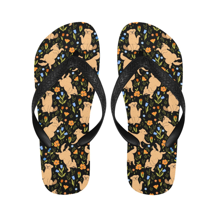 Flower Garden Golden Retriever Unisex Slippers-Black-S-23
