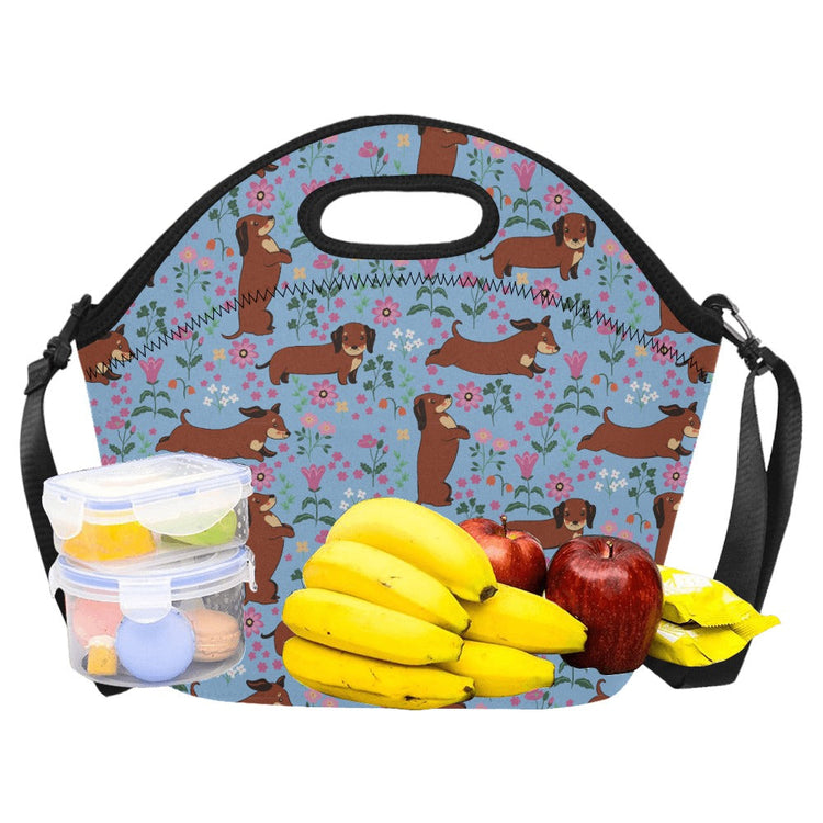 Flower Garden Red Dachshund Neoprene Lunch Bag
