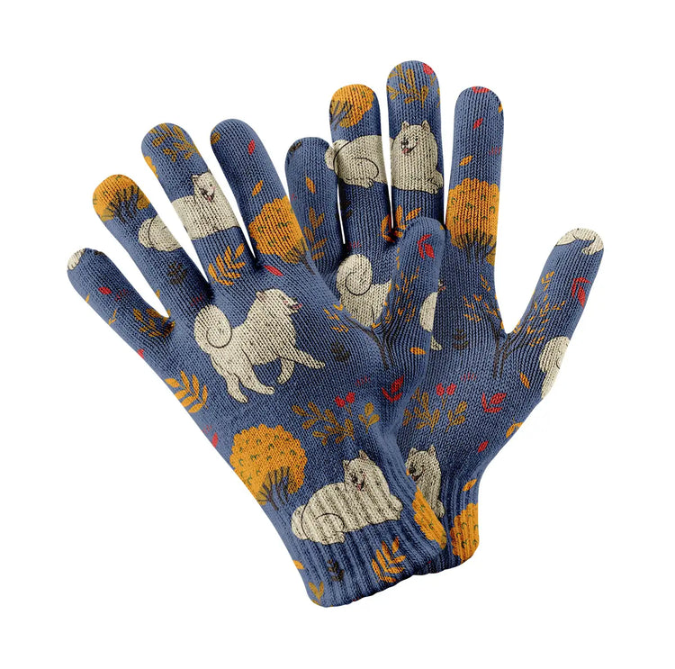 Fall in love with our Fluffy Samoyeds in Autumn Bliss Touch Screen Gloves!